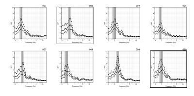 - individual curves from the selected windows, with the color of the corresponding window in the signal sheet (provided All window of the H/V options or Spectrum options in Preferences has been selected