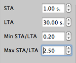 Geopsy: H/V and Spectrum Toolboxes: Time Tab: Anti-trigger parameters