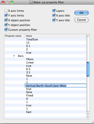 When the option Custom property filter is checked, a window opens inside the Make-up property filter window itself.