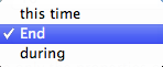 - during: time duration before the end of the signal, specified either by End or this time in the To list (described below).