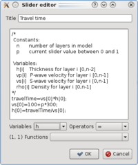 - Play with slider controls. You may eventually freeze axis limits by unchecking option Automatic limits in menu Format. Set Sediment Vs and Travel time to their minimum value, and Thickness and Bed-rock Vs to their maximum before freezing limits. This way you get the largest ranges for axis values.