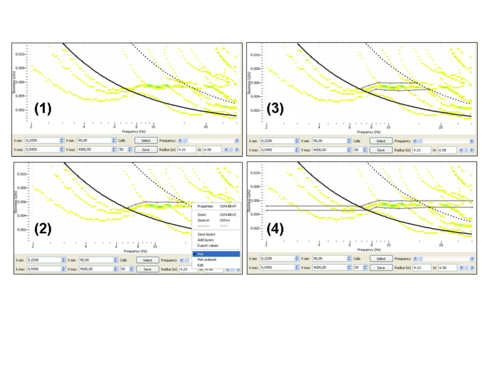 in order to finalize the frequency-slowness selection (see step (4) in the figure on the right) - you should then see on the right panel the spatial autocorrelation values (black dots) contributing to the selected phase slownesses as displayed below.