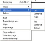 If the user selects a number of objects he can use the Alignment Option in the Object menu in order to align the objects to the Left, Center, Right as horizontal alignment, or Top, Centered, Bottom as vertical alignment.