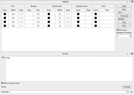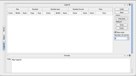 or right-click on a blank part of the graphic sheet and access Insert/Legend through the context menu (useful for Mac users who have no top menu bar when the graphic sheet is embedded in a larger application, e.g. inside geopsy).