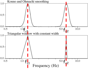 Comparison between Konno and Ohmachi and triangular window smoothing.