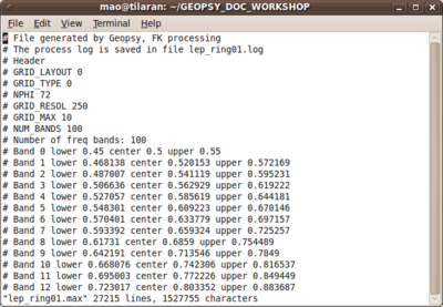 the processing run. The extension of this file is set to .log. Parameters can be reloaded from an existing .log file in the Load parameters option form the Time tab of the f-k toolbox