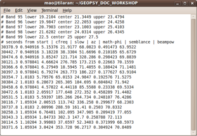 The contents of the output file are best explained by having a look into the plain ascii file. Header lines are marked with a # as the first character of the line. The header entries of the max files provide the list of frequency bands that were processed. Other entaa,ries are obsolete but are kept for compatibility with former file formats used in other codes during the SESAME project.